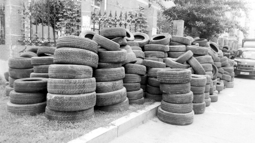 沈阳天河家园遭遇“黑色污染” 废旧轮胎成堆放院边