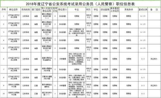 1.2018年度辽宁省公安系统考试录用公务员(人民警察)职位信息表