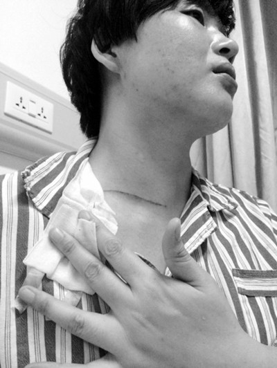 这名男子并没有转身离去,而是继续往屋内走。徐女士突然感觉到事情不妙,想要站起来防范。男子从随身携带的兜子里面掏出了一把长约20厘米的锯条,一步蹿到徐女士跟前,把锯条架在她的脖子上,又猛地划了一下。