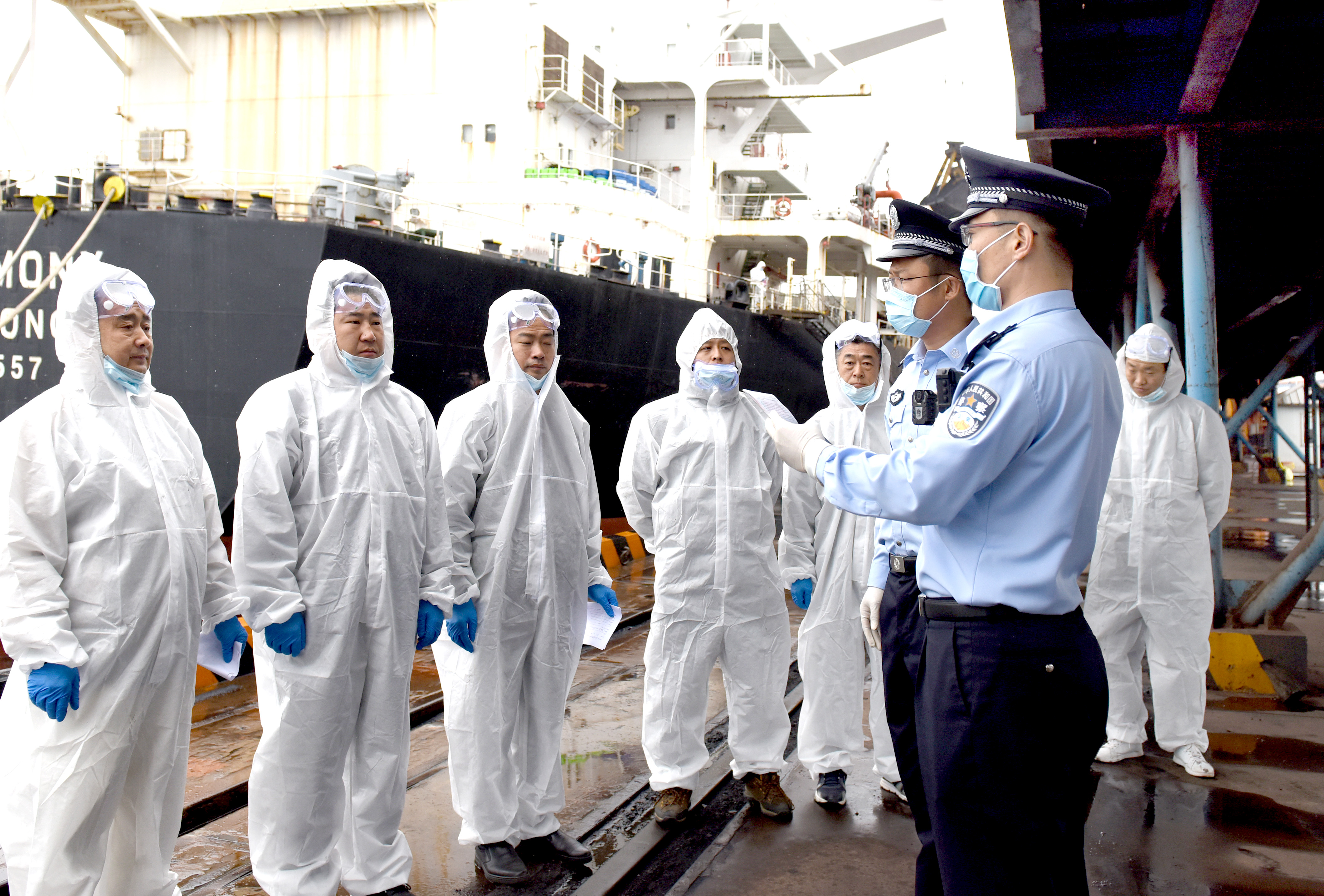 接到“和谐”号货轮船员离船换班任务后,丹东港出入境边防检查站联合海事、海关等联检单位启动疫情期间勤务模式,了解核实船舶航行轨迹、船员登陆、疫情接触等相关情况,制定专项勤务工作方案,确保各个环节严谨周密、不出纰漏。