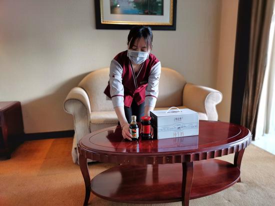 汪德志介绍,入住的医疗队员在酒店享受“专属区域、专属电梯、专属通道”,酒店3-6楼的D区和E区将为分批归来的医疗队员逐一开放,每批队员入住单独区域,与普通住客区域分离,且享有入住的绿色通道。酒店提前做好了全面大清、通风、消毒、检修、维护,还将入住区域的中央空调关闭,改为每个房间单独的电暖气,确保白衣天使入住舒适安全。