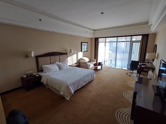 记者看到,为医护人员准备的房间是标准的单间大床房,配有独立卫生间和宽敞的阳台,站在阳台上能够看到楼下的酒店园林和湖景,医疗队员入住的每个房间都是湖景房。