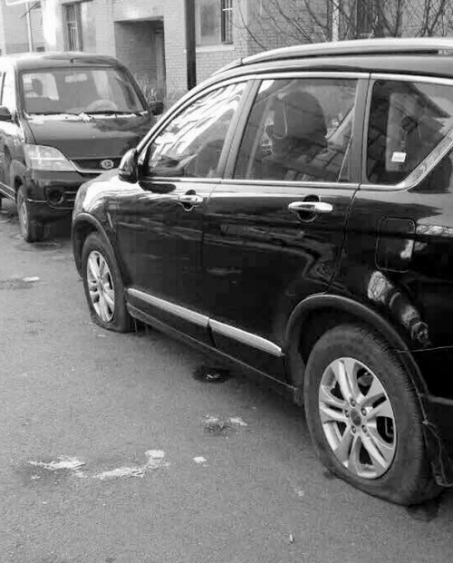 2月17日上午,浑南区绿色家园小区的几位业主下楼准备开车时,突然发现自己的车胎不知什么时候被人放了气,车胎干瘪,车已经无法驾驶!在小区里,共有七八辆像这样被放气的车。到底是谁这么缺德?