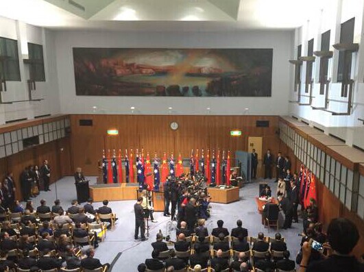 习大大晚宴致辞时,这样评价当时的场景: 刚才和阿博特总理我们在签约仪式上站了很久,但是站的时间越长越是体现合作成果之丰硕。我们要把这些成果落到实处。