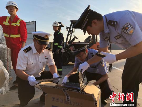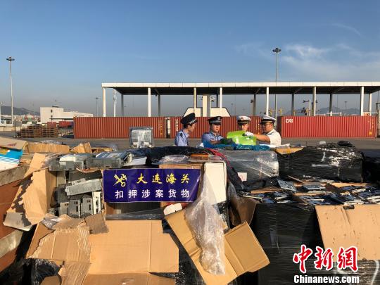 大连海关破获“洋垃圾”走私大案。 王欣祥 摄根据通报,犯罪嫌疑人赵某、乔某等人共谋,将废电池、旧机电产品等国家禁止进口的固体废物伪报品名后由香港经大连转关入境。经查证,该团伙共走私进境电脑主机、废旧电池等电子类固体废物290余吨,大连海关凌晨集结,清晨出击,现场查扣进口“洋垃圾”28.08吨。