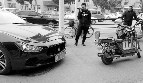 沈阳一女子与玛莎拉蒂剐碰后吓哭(图)