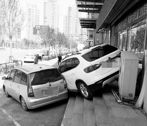 沈阳一女新手司机驾SUV倒车冲台阶 险酿惨剧(图)