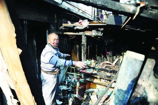 张师傅家的仓库被烧毁,里面的工具和材料价值三四万元。