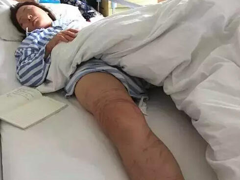 上岸后,家人发现母女俩腿上全是被海蜇蛰出来的红色“绺子”,孩子疼得哇哇哭,妈妈也是疼痛难忍。公园的工作人员赶紧递来明矾给娘俩进行清洗,随后家人火速把她们送往前牧一家医院。