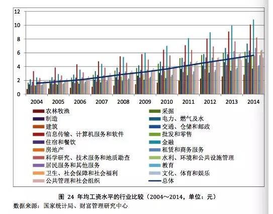 图片来源:《国人工资报告》数据显示,2004年至2015年间,国人工资水平上涨了约2.95倍,在进入经济新常态以及收入倍增计划等一系列增收入、减差距等政策的影响下,国人工资水平整体呈增长态势,但在行业、区域等维度上的差距也更加明显。