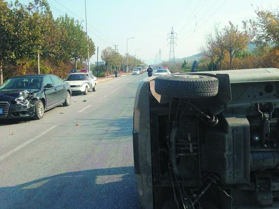 ”奥迪轿车驾驶员对记者说。该起事故占用了两排机动车道,造成交通拥堵。