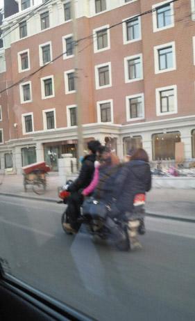 9日,网友微博爆料称,她在大连西岗区大菜市附近见到了一辆坐了5人的摩托车。从她提供的照片中可见,车上坐了4个大人1个孩子。
