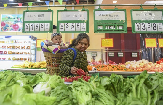 12月10日,消费者在重庆市石柱土家族自治县的一家超市内选购蔬菜。