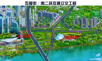 据了解,五爱街/南二环互通立交工程主要采用高架桥与地面匝道相结合的建设方式,由青年大街/二环路立交、五爱街/二环路立交、青年桥北桥头立交3处分立交组团组成。通过3处组团立交实现青年大街、五爱街以及南二环的互通。工程共新建、改建26条匝道(新建匝道18条、改建匝道8条)。