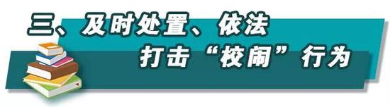 一旦发生“校闹”行为,要求公安机关及时出警,依法制止;对于实施“校闹”行为,扰乱社会秩序、造成他人人身伤害或财产损失的,要按照治安管理处罚法的规定予以处罚;构成犯罪的,要按照刑法相关规定予以惩处。特别是对于故意扩大事态,教唆他人实施针对学校和教职工、学生的违法犯罪行为,或者以受他人委托处理纠纷为名实施敲诈勒索、寻衅滋事等行为的,要依法从严惩处。“校闹”行为造成他人人身或财产权益损害的,要支持被侵权人向“校闹”行为人追究侵权责任。同时,可以通过联合惩戒机制,对实施“校闹”、聚众扰乱社会秩序的人员实施惩戒。