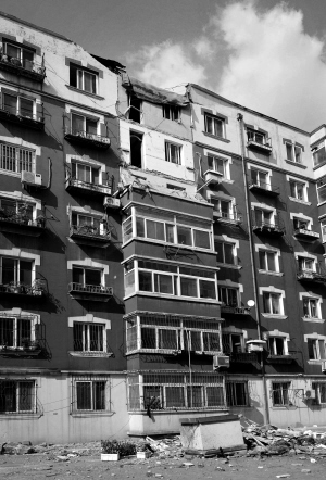 昨日下午,沈阳市大东区合作街120号发生楼体坍塌事故,七楼和六楼两层阳台整个坠落到五楼,所幸没有造成人员伤亡。