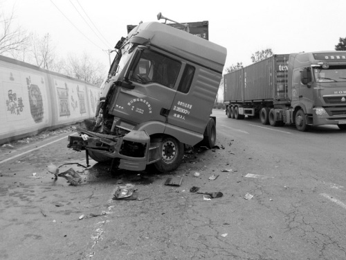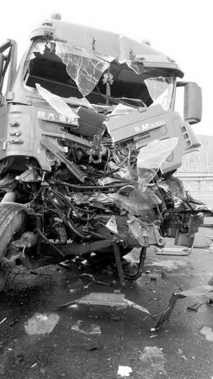 沈阳一大货因前车急刹追尾撞报废(图)