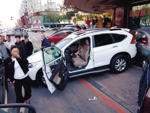 “当时我正从路边过,先是听见‘哐啷’一声撞击声,与此同时,传来一声女子凄厉的惨叫。”原来,一名年纪60岁上下的女子被挤在了一辆白色本田吉普车与一辆宝马吉普车之间动弹不得,满脸痛苦之色。