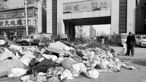 沈阳一小区现 “垃圾山”堵住园区门(图)