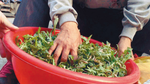 沈阳四环路绿化带上婆婆丁遭哄抢卖到市场