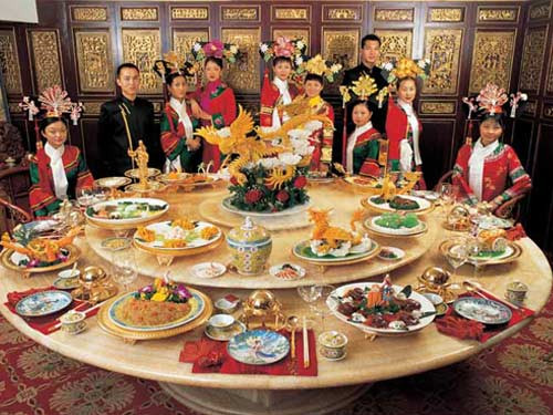 沈阳故宫博物院研究员佟悦说,很多清宫电视剧中皇帝与皇后或妃子同餐,其实,清宫讲究严格的等级关系,皇帝和各皇妃都是在各自宫中吃饭,很少同桌。只有在除夕夜这天才是帝后妃嫔团聚的日子,一家人围坐在一起吃年夜饭,使威严的帝王之家也显露出难得的家庭温情。除夕团圆年饭要于下午4时举行。