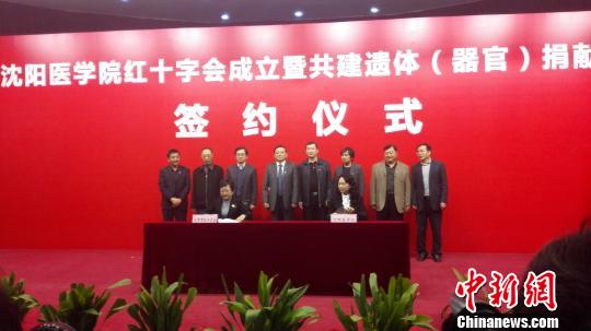 中新网沈阳4月2日电 (记者 朱明宇)在第71个世界红十字与红新月日来临之际,沈阳市红十字会与沈阳医学院2日举行沈阳医学院红十字会成立暨共建遗体(器官)捐献库签约仪式。