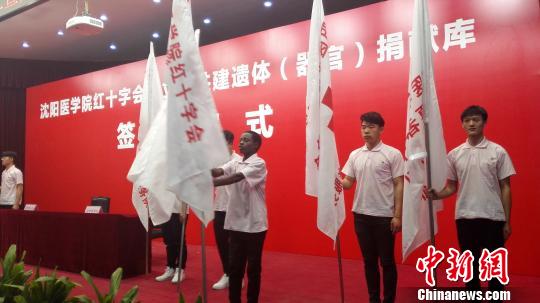 4月2日,沈阳市红十字会与沈阳医学院举行沈阳医学院红十字会成立暨共建遗体(器官)捐献库签约仪式。图为外国留学生代表宣誓发言。 朱明宇 摄根据协议内容,沈阳医学院将负责建设全国一流的遗体器官捐献馆,建立遗体和器官捐献库,集告别、接收、转运、贮存等功能,负责日常维护和管理。在该校人体科学馆内设立捐遗者事迹纪念园地,面向社会开放,展示捐献者博爱、奉献的人道主义精神,为捐献者家属提供人文关怀和缅怀祭奠的场所。