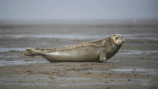 3月25日,一只 斑海豹 在辽宁盘锦双台河口三道沟海域的滩涂上休息。近日,辽宁盘锦双台河口三道沟海域滩涂上出现大批洄游栖息的斑海豹。据了解,每年2月到5月,成群的斑海豹都会洄游至辽河入海口处活动。目前在双台河口附近海域约有300余头斑海豹,这些斑海豹将在此处海域栖息至5月中旬,随后它们将逐渐离开辽东湾。新华社记者潘昱龙摄