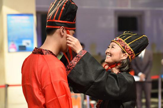 “在国际部,孩子们吸收了很多西式和世界上的教育理念,这样一种活动,让他们不忘民族传承,很有意义。”学生鄂镜同的父亲鄂清华在现场表示,孩子即将到北卡罗莱纳大学教堂山分校求学,这样一场成人仪式,让他们见证了孩子们的成长,倍感欣慰。现场,学生们还朗诵了《为最美的青春歌唱》,以及表演手语舞《跪羊图》,表达自己对肩上责任的担当和对父母的感恩。