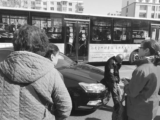 私家车逼停公交 俩司机争执动手