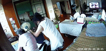 8月5日晚上18:30,唐大娘想要喝水,被保姆拽倒殴打,儿子通过监控视频发现……唐大娘这一天之内被保姆打了三次……