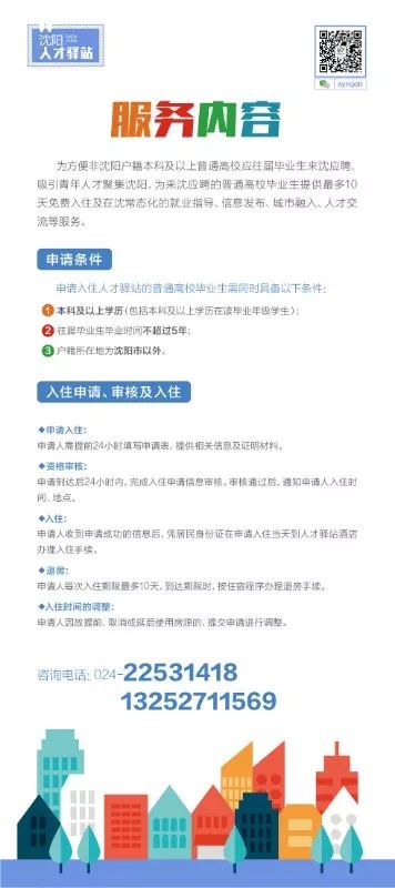 为方便外地毕业生来沈求职面试,沈阳市提出开设“人才驿站”, 为来沈求职、应聘的外地本科及以上学历的应届毕业生、毕业5年内的往届毕业生,提供10天内免费入住的服务。 据悉,人才驿站主要为政府提供的公租房和经济型酒店。