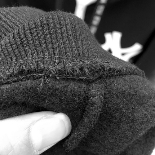 只翻看了几件男装上衣,郭先生就感觉不太对劲儿。“衣服看起来版型不好,而且做工差,车线不齐、线头、开线等情况随处可见,这怎么能是正宗的MLB呢?”郭先生随后询问了销售人员,对方表示,她们销售的都是商场专柜货,没有任何问题。这样的回答并未让郭先生打消疑虑。