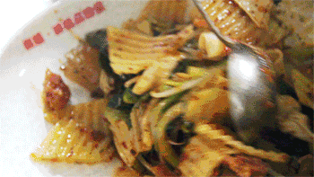喝羊汤的时候,自然少不了“羊系列”的配菜,比如尖椒炒羊肉、手抓羊肉、羊蹄,尤其是干煸羊杂就花卷,超级好吃!