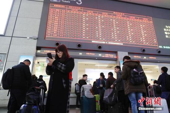 资料图:12月12日,旅客在铁路上海虹桥站排队购买车票。殷立勤 摄铁路12306网售出的车票中,网站售出163.8万张,占网售车票16.2%;手机客户端售出845.3万张,占网售车票的83.8%。候补购票订单兑现12.8万笔、车票15.4万张,昨日已发列车车票候补兑现率达81.7%。