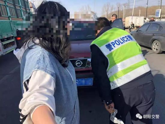 故意遮挡机动车号牌!!!执勤交警立即截停了这辆车,并要求开车的女司机下车接受检查。
