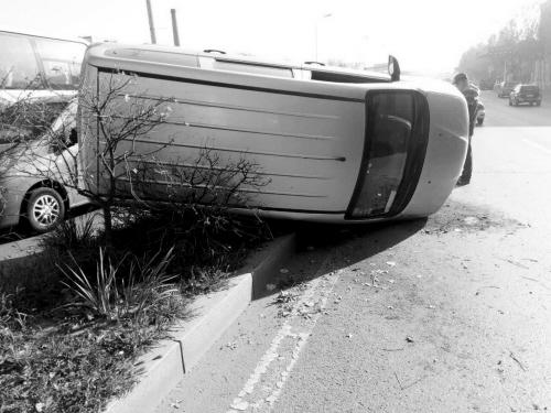 沈阳一面包车在高架桥上打滑侧翻 路面结薄冰是元凶