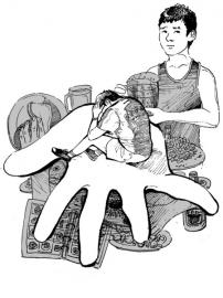 小赵是普兰店市高级中学的毕业生,今年刚参加完高考,想利用假期勤工俭学。经人介绍,小赵和几位同学来到了傅家庄海滨浴场内的一家海鲜餐厅的烧烤大排档做起了服务员。“老板答应我们一天100元钱工资,什么时候离开什么时候结账。”小赵说。