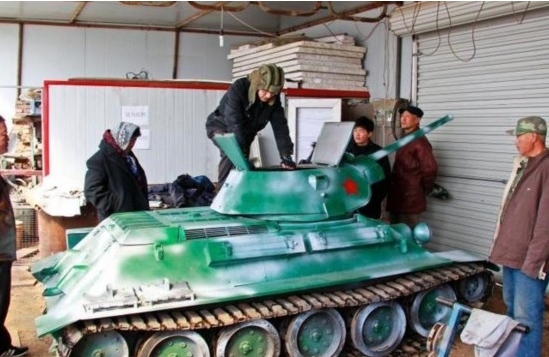 近日,辽宁大连市旅顺口区的青年农民邹炳钰和他的父亲经过一年的努力,手工仿制出一台1:2比例的前苏联T34型坦克的微缩模型,并安装有可以驾驶操作的动力装置。据了解,邹炳钰父子受深圳微缩公园的启发,仅靠角磨机、钻床、电焊机和手电钻便完成了这辆威武的坦克。